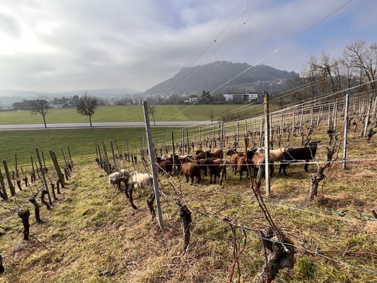 Die Schafe von Janis aus Würenlingen erfreuten sich sehr, unser Gras unter den Rebstöcken fressen zu dürfen und leisten noch einen wertvollen Beitrag,